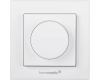 - De draaiknop past in 55 x 55 mm afdekramen en kan geïntegreerd worden in schakelmateriaal van Gira, Jung, Busch-Jaeger, Merten en Berker.
