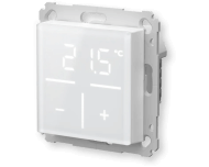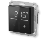 Glazen thermostaat met ingebouwde 230V voeding. Met + en - touch bediende knoppen voor gewenste temperatuur
