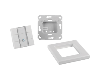 - Past in 55 x 55 mm afdekramen en kan geïntegreerd worden in schakelmateriaal van Gira, Jung, Busch-Jaeger, Merten en Berker.