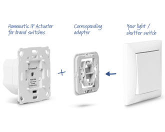 - Kies bij elke drukknop een bijbehorende wipvlak adapter, geschikt voor het merk en type schakelmateriaal.
