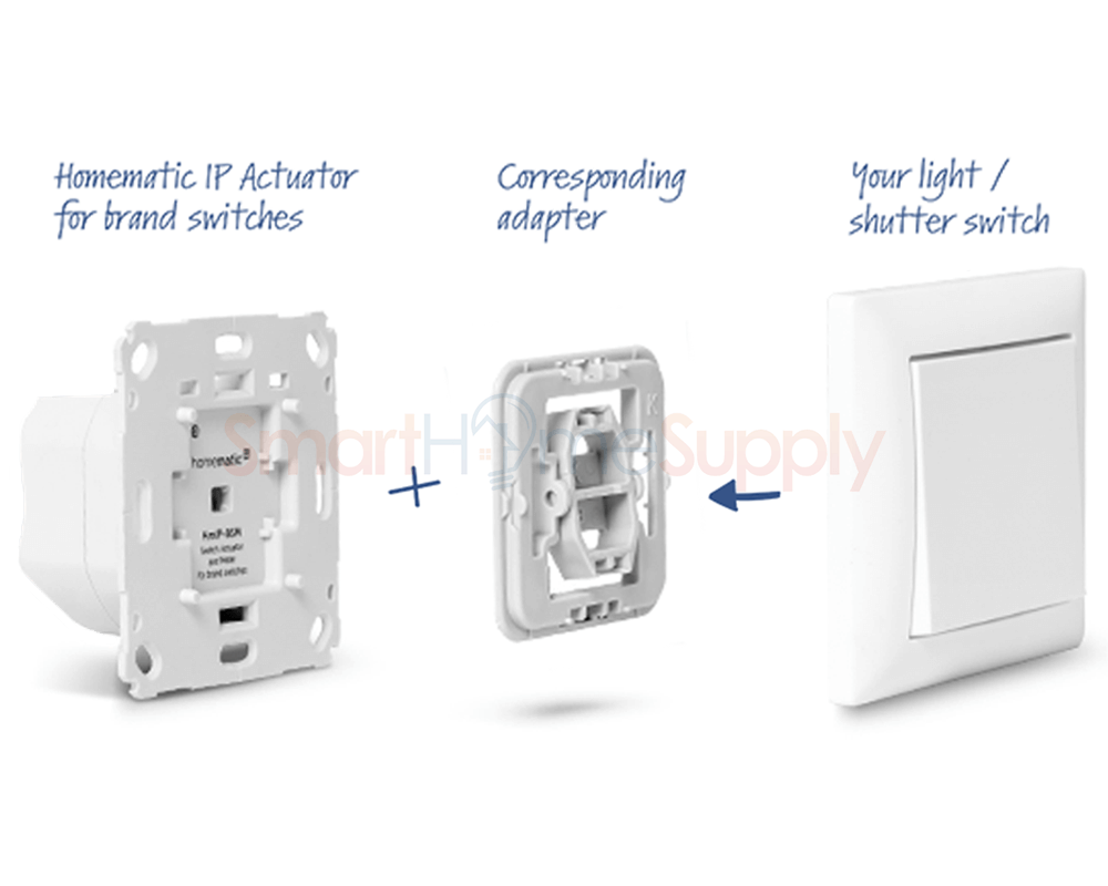 - De Homematic IP Wired drukknop voor merk-wipvlak is op drie manieren te koppelen aan andere Homematic IP apparaten: